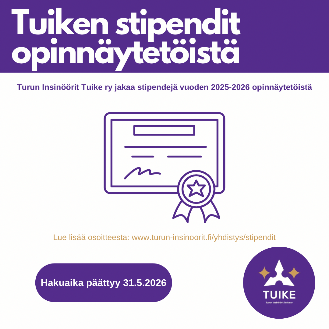 Turun Insinöörit Tuike ry jakaa stipendejä vuoden 2025-2026 opinnäytetöistä.